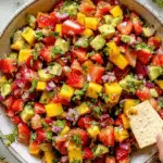 Bright and flavorful avocado strawberry mango salsa that’s perfect for dipping chips or adding a fresh twist to salads, tacos, fish, or chicken. This easy, healthy fruit salsa combines sweetness from strawberries and mango with creamy avocado and a spicy kick from jalapeño. Ready in just 15 minutes, it’s an ideal appetizer for parties and gatherings.