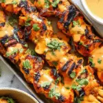 Serve these skewers alongside jasmine rice or coconut sticky rice to soak up all the delicious sauce. Fresh crunchy cucumber salad or shredded cabbage slaw dressed with lime and chili provides a refreshing counterpoint to the richness of the chicken and sauce, rounding out the meal perfectly.