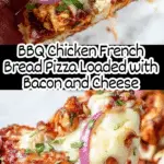 A delicious BBQ Chicken French Bread Pizza inspired by California Pizza Kitchen, featuring seasoned chicken, crispy bacon, two types of barbecue sauces, and melted mozzarella cheese on a crispy French bread base. Ready in 30 minutes, this recipe is perfect for a flavorful and hearty meal.