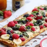 This Berry and Brie Flatbread recipe combines the rich creaminess of brie cheese with the fresh sweetness of berries, balanced by apricot jam, balsamic glaze, and a touch of hot honey. Grilled to perfection for a crispy base and melty topping, it’s an elegant and quick appetizer or light meal perfect for any occasion.