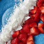 - Assemble and serve: Spoon the smoothie mixture evenly into serving bowls. Top each bowl with the chopped strawberries and coconut shreds or any other desired toppings. Serve immediately and enjoy your refreshing blue smoothie bowl.