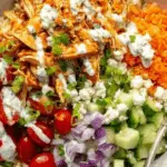 This Buffalo Chicken Rice Bowls Recipe has become one of my absolute favorites because it’s both comforting and exciting all at once. The combination of spicy chicken, fresh veggies, creamy ranch, and hearty rice comes together so beautifully, it’s no wonder it quickly becomes a go-to meal. Whether you’re meal prepping for the week or cooking for family and friends, this bowl hits every craving spot. Give it a try and watch how fast it becomes a staple in your home!