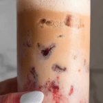 - Make the cherry vanilla cold foam: Using a milk frother or smoothie blender, whip the vanilla creamer together with the reserved cherry juice until it forms a thick, creamy but pourable cold foam.