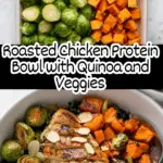 This wholesome Chicken Protein Bowl combines nutrient-packed quinoa, roasted sweet potatoes and Brussels sprouts, tender marinated chicken, sautéed kale, and toasted almonds, all brought together with a zesty lemon-Dijon dressing. Perfect for a balanced meal rich in protein and vegetables, this recipe offers vibrant flavors and satisfying textures.