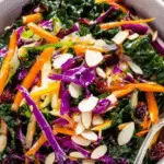 This vibrant Chopped Kale Salad with Cranberries and Almonds is a fresh and healthy dish combining nutrient-packed kale, sweet dried cranberries, crunchy almonds, and a tangy maple Dijon dressing. Perfect for a quick, no-cook meal or a make-ahead side, this salad offers a satisfying blend of textures and flavors with a boost of vitamins and antioxidants.