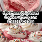 These festive Christmas Pink Velvet Cookies feature a tender, buttery pink cookie base flavored with cake batter essence and topped with a smooth cream cheese frosting. Adorned with colorful Christmas sprinkles, they are perfect for holiday celebrations, combining a soft texture with a rich, creamy topping that melts in your mouth.
