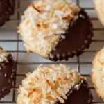 Allow the cookies to cool fully on a rack. Then dip half of each cookie into the melted chocolate and immediately sprinkle the toasted coconut on top. Let the chocolate harden—this is when the magic really comes together.