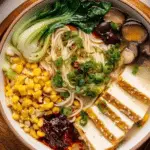 This creamy vegan mushroom ramen is a comforting and flavorful dish that combines a rich coconut milk and mushroom broth with tender noodles, fresh baby bok choy, and sautéed mixed mushrooms. Quick to prepare in about 20 minutes, it’s perfect for a satisfying plant-based meal that’s both hearty and wholesome.
