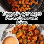 Enjoy perfectly crispy and flavorful sweet potato cubes made easily in the air fryer. These golden bites are seasoned with a blend of cumin, garlic powder, smoked paprika, and black pepper, then air fried to tender, crispy perfection. They make a delicious side dish or a healthy snack.