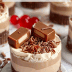 Kinder Bueno Mini Cheesecakes are the perfect bite-sized indulgence for chocolate lovers. With a buttery cookie base, a smooth and creamy Kinder Bueno-infused filling, and a swirl of chocolate whipped cream on top, these no-bake mini treats deliver layers of flavor and texture in every bite. They’re easy to make, visually stunning, and ideal for parties or when you just want a decadent dessert without baking.