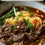 Satay Beef Noodle Soup is a soul-warming dish that brings bold flavors and comforting textures to your table. Inspired by Taiwanese street food, this recipe features tender marinated beef, chewy flour noodles, and a rich, savory satay broth made from Chinese sacha BBQ sauce, shrimp paste, and aromatic spices. Topped with fresh scallions, crunchy bean sprouts, and crushed peanuts, it’s a hearty bowl that’s both satisfying and deeply flavorful.