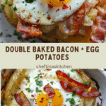 Total time: 1 hour 39 minutesDouble Baked Bacon + Egg Potatoes