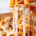 Once your cheese-topped casserole is out of the oven, give the pasta a final gentle stir to incorporate pockets of melted cheese with meatballs and sauce. It’s now ready to serve — warm, hearty, and irresistible.
