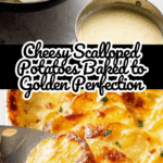 This Easy Cheesy Scalloped Potatoes recipe combines tender, thinly sliced Russet or Yukon Gold potatoes with a rich, creamy sauce made from garlic-infused heavy cream and a blend of sharp cheddar and parmesan cheeses. Baked to golden perfection, this comforting side dish is perfect for holiday dinners or any meal that calls for indulgent, cheesy potatoes.