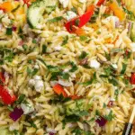 This Easy Lemon Orzo Salad with Feta Recipe stores beautifully in the refrigerator in a sealed container for up to five days. Keep it chilled to maintain freshness and prevent the feta from getting too soft. Give it a quick toss before serving to redistribute the dressing.