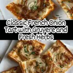 This classic French Onion Tart features a flaky homemade pastry crust filled with sweet caramelized onions, melted Gruyere cheese, and fragrant fresh herbs. Perfect as an elegant appetizer or a light meal, the tart combines savory flavors with a rich buttery crust baked to golden perfection.