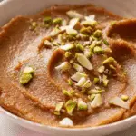 - Garnish and Serve: Serve the halwa warm, garnished generously with raisins, thinly sliced almonds, and slivered pistachios. Enjoy this comforting, traditional dessert!