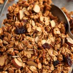 This healthy granola recipe is naturally sweetened with maple syrup or honey and packed with oats, coconut oil, nuts, and dried fruit. It’s easy to make, customizable, and perfect for breakfast or a snack.