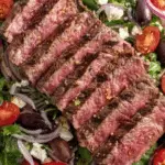 This Grilled Steak Salad recipe combines perfectly marinated skirt steak with fresh arugula, tangy goat cheese, kalamata olives, and a vibrant vinaigrette. The steak is grilled to medium-rare, sliced thinly against the grain for tenderness, and served atop a bed of crisp vegetables for a satisfying and flavorful meal that’s perfect for lunch or dinner.
