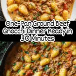 A quick and hearty one-pan Ground Beef Gnocchi recipe that combines tender gnocchi with savory ground beef, a creamy tomato sauce, and melted pepper jack cheese. Ready in just 30 minutes, this comforting dish is perfect for a satisfying weeknight meal.
