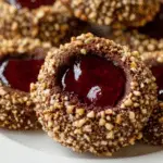 These Hazelnut Raspberry Thumbprints are delicate, chocolatey cookies with a buttery crumb, rolled in finely chopped roasted hazelnuts, and filled with a glossy raspberry jam. Perfect for tea time or festive gatherings, these elegant little treats combine rich cocoa and nutty crunch with the bright sweetness of raspberry preserves.