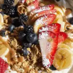 This Healthy Banana Split is a nutritious twist on the classic dessert, made with Greek yogurt, fresh berries, granola, and a drizzle of peanut butter. It’s quick, easy, and perfect for breakfast, a snack, or a light dessert.