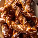 Honey Butter Soft Pretzel Candy Canes are festive and buttery-soft rolls shaped into candy canes, brushed with sweet honey butter. These rolls are salty-sweet, fluffy, and golden brown—perfect for holiday dinners or a cozy breakfast treat.