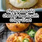 Homemade New York-style chewy Jalapeño Cheddar Bagels with a thin, crispy crust and a soft, super chewy crumb, ready in under 2 hours. These bagels are infused with spicy jalapeños and savory cheddar cheese, perfect for breakfast or a snack.