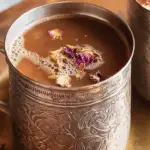 Garnishing with saffron strands and almonds is traditional and elevates the tea’s visual appeal and flavor. The saffron imparts a lovely golden tint and subtle sweetness, while the almonds provide a buttery texture that makes each sip more enjoyable.