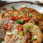 Chamchijeon, or Korean Tuna Pancakes, are savory and crispy golden bites made with canned tuna, eggs, and vegetables. Perfect as a side dish, appetizer, or protein-packed snack, they’re quick, flavorful, and served with a tangy soy-vinegar dipping sauce.