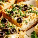 Matt’s Olive Cheese Bread is a flavorful and easy-to-make Italian-inspired appetizer featuring a ciabatta loaf loaded with a spicy, garlicky butter and mayonnaise spread, topped with melty mozzarella, a blend of Castelvetrano and Kalamata olives, and freshly grated Parmesan cheese. Baked until golden and bubbly, this bread is perfect for sharing as a party snack or a savory side dish.
