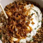 Mujadara is a traditional Middle Eastern dish featuring green or brown lentils cooked with brown rice and topped with deliciously caramelized onions. This wholesome, vegetarian recipe combines simple ingredients with fragrant spices like cumin and bay leaves to create a comforting, nutritious meal that’s perfect for any time of the year.