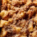 - Bake the Casserole: Preheat your oven to 350°F (180°C). Remove the casserole from the refrigerator and uncover. Sprinkle the prepared crumbly topping evenly over the soaked bread. Bake uncovered for 45 to 50 minutes, or until the topping is golden brown and the casserole is fully set in the center.