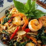 Pad Kee Mao, also known as Drunken Noodles, is a vibrant and flavorful Thai stir-fried noodle dish featuring wide rice noodles, fresh vegetables, your choice of protein, and fragrant holy basil. Quick to prepare and packed with spicy, savory, and slightly sweet flavors, this dish is perfect for a satisfying weeknight meal or when craving authentic Thai street food at home.