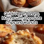 These Quick & Easy Vegan Banana Muffins are moist, flavorful, and perfect for a healthy snack or breakfast. Made with ripe bananas, non-dairy milk, and a blend of simple pantry ingredients, they come together quickly with no eggs or dairy, making them a delicious vegan treat. The addition of walnuts or chocolate chips adds a delightful texture and extra indulgence.
