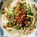 Scallion oil noodles is a simple yet flavorful Chinese noodle dish featuring thin noodles tossed in a fragrant scallion and ginger-infused oil, seasoned with oyster sauce and black vinegar, and topped with crispy shallots for a delightful crunch. This quick recipe takes about 30 minutes to prepare and serves 4, making it an ideal weeknight meal that’s both comforting and aromatic.
