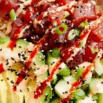 This Spicy Tuna Poke Bowl is a vibrant and fresh Hawaiian-inspired dish featuring sushi-grade tuna tossed in a flavorful spicy sauce, layered over a bed of rice with crisp cucumbers and creamy avocado. Ready in just 15 minutes, it’s a perfect meal for those craving a healthy, quick, and delicious seafood bowl with a kick of heat.