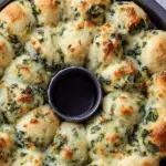 This Spinach Artichoke Pull Apart Bread is a delicious and savory appetizer perfect for parties or gatherings. Layers of fluffy biscuit dough are filled with a creamy mixture of artichoke hearts, spinach, Parmesan cheese, and mayonnaise, creating a flavorful pull-apart bread that’s both easy to make and crowd-pleasing.