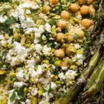 Drizzle a little of your lemon feta vinaigrette over the couscous mixture and toss gently to coat. Layer the roasted asparagus spears on top along with the roasted pistachios for that satisfying crunch. Drizzle with as much more vinaigrette as you like, then serve immediately for a fresh, bright meal that feels like spring on a plate.