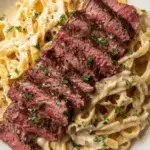 Thinly slice the rested steak at an angle against the grain to maximize tenderness. Pile the pasta onto plates, top with the steak slices, and finish with extra Parmesan and parsley for that final burst of flavor and color. Serve immediately and delight in this soul-satisfying combination.