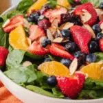 A vibrant and refreshing Strawberry Spinach Salad featuring fresh spinach, strawberries, blueberries, and mandarin oranges, all tossed with a tangy homemade poppy seed dressing. This quick and easy salad is perfect for a light lunch or a healthy side dish, bursting with sweet and tangy flavors complemented by crunchy almonds.
