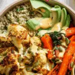 This Viral Roasted Veggie Bowl is a delicious and nutritious winter meal featuring caramelized roasted cauliflower and carrots, fluffy quinoa with wilted kale, and a vibrant Golden Tahini Dressing. Packed with wholesome vegetables, protein-rich quinoa, and a creamy, spiced dressing, this bowl is perfect for a healthy, comforting lunch or dinner.