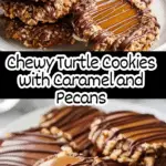 Turtle Cookies are rich, chocolatey treats coated with crunchy pecans and filled with luscious melted caramel. These homemade cookies combine a cocoa-infused dough rolled in pecans, baked to perfection, then topped with gooey caramel and a decadent chocolate drizzle for a perfect blend of textures and flavors.