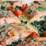 Tuscan Salmon is a creamy, garlic-Parmesan delight with fresh spinach, tomatoes, and basil simmered in a luscious sauce. Seared salmon fillets are nestled into this Italian-inspired cream sauce, making it an easy, elegant dinner ready in under 30 minutes.